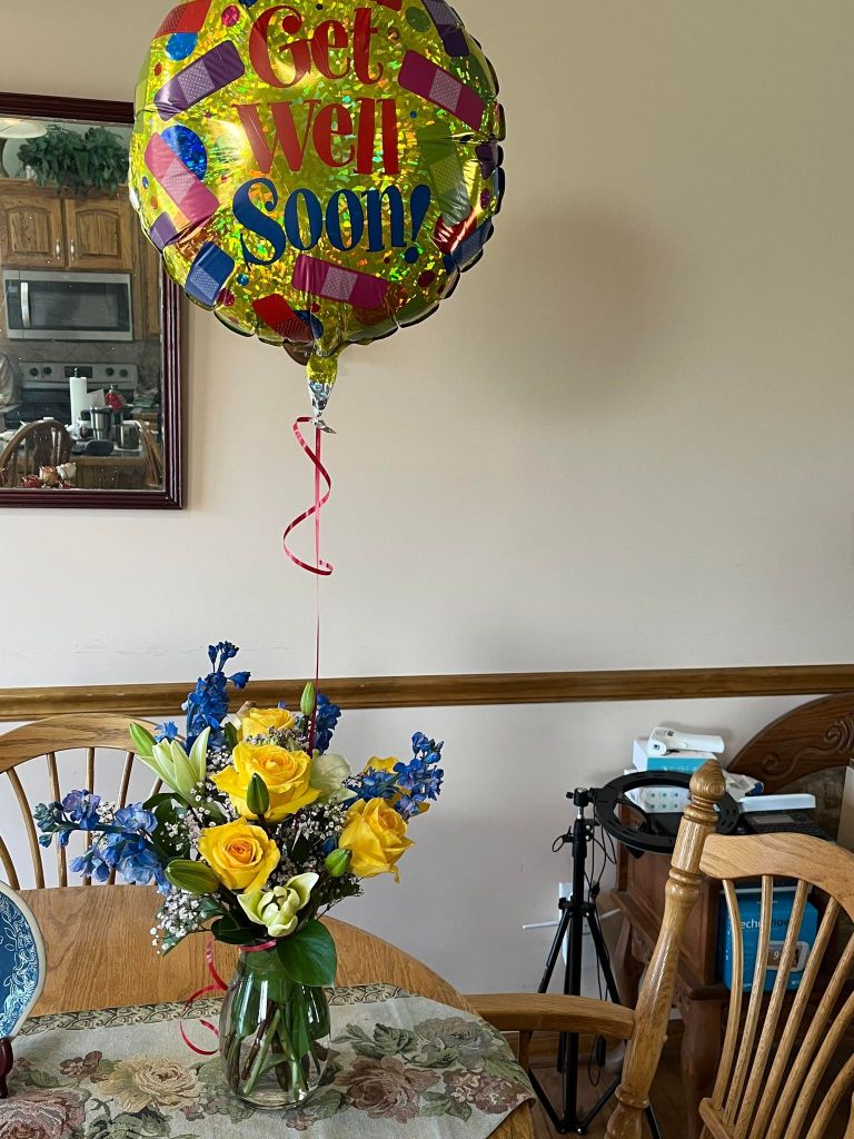 Months went by and she passed away without seeing him due to COVID19. A few days later, he was released from the hospital. He walked into his empty home and there was the flower arrangement on the table. She had left a note. He wondered what he would do without her and then he sat down and cried,